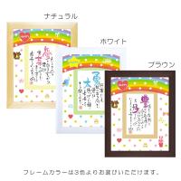 | 商品説明 | お一人のお名前で綴るはがきタイプのポエムを、子ども向けのかわいいデザインフレームで装飾した『ハッピースター』『ハッピーハート』。壁掛け、スタンドのどちらも対応した、飾りやすいサイズ感。フレームカラーはお好みのものをお選び下さい。 幸せな未来・健やかな成長を願う名前詩は、命名、お子様の誕生記念はもちろん、出産祝い、誕生日プレゼント、入園・入学、卒業・進級・進学のお祝い、祖父母への出産内祝い、結婚式に来てくれた小さな可愛いゲストへのお礼など様々なギフトにご利用いただけます。 ネームインポエムとは、そのフレーズ通り、名前を織り込んで作るポエムのことです。専属の作家がお名前と用途から作詩して丁寧に綴るポエムは、想いの伝わる、世界に一つだけの作品となります。 1人用はがきタイプの同シリーズには、年齢や性別を問わないスタイリッシュなデザイン、シンプルなデザインもご用意しております。 |