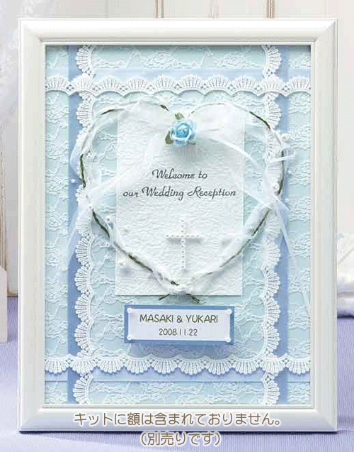 その他の手作りウェディングキットは⇒ | | セット内容 | 厚紙/レース/リボン/造花/作り方説明書/他 | | 完成品サイズ | 約37.8cm×28.8cm | | 注意事項 | ・このキットには、額、周辺の装飾品は含まれておりません。 ・商品の色は、写真と多少異なる場合があります。 | |