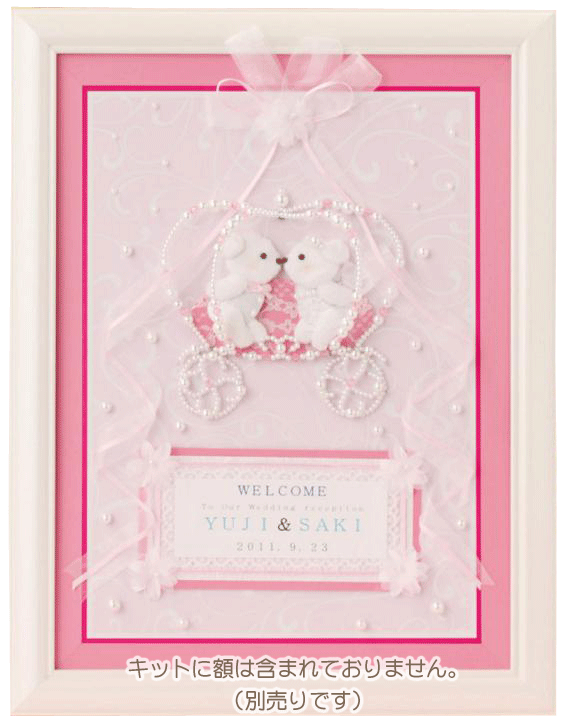 その他の手作りウェディングキットは⇒ | | セット内容 | 厚紙/レース/リボン/造花/パールビーズ/ビーズ/作り方説明書/他 | | 完成品サイズ | 約37.8cm×28.8cm | | 注意事項 | ・このキットには、額、周辺の装飾品は含まれておりません。 ・商品の色は、写真と多少異なる場合があります。 | |