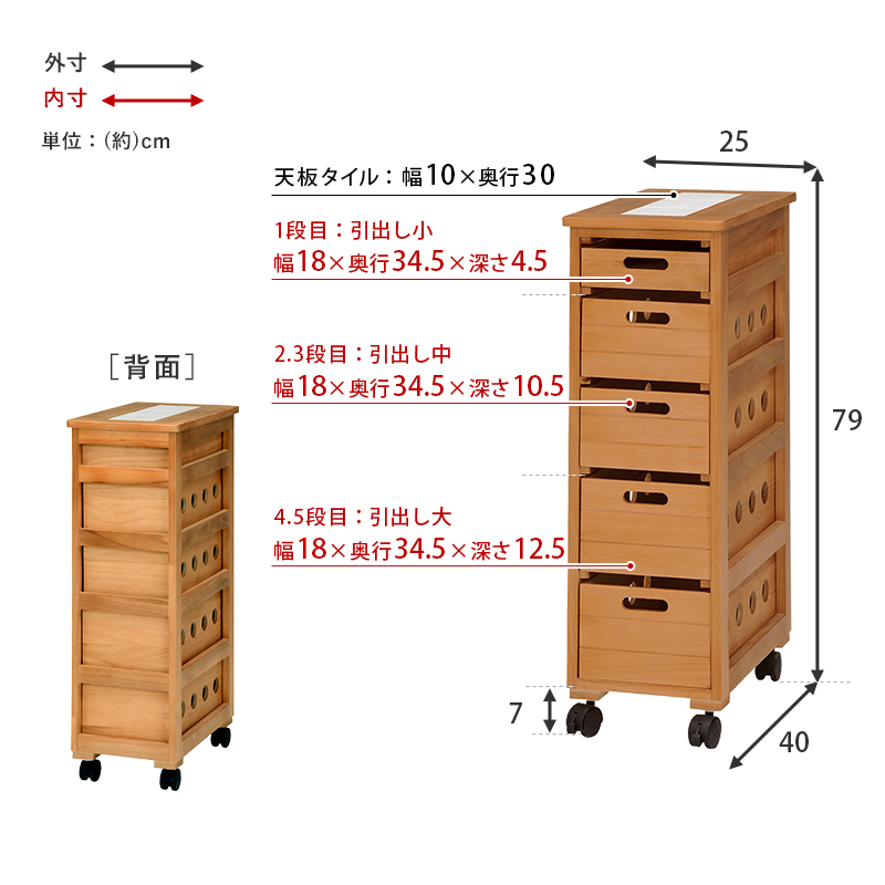 ■引出内寸:約幅18×奥行34.5×(浅)4.5(中)10.5(深)12.5cm