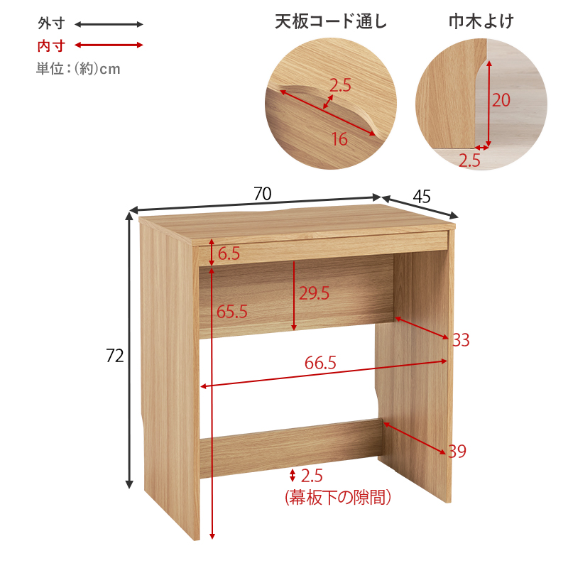 デスク 机 幅70cm 奥行45 おしゃれ シンプル コンパクト 省スペース 木製 北欧 ナチュラル ブラウン コード通し 巾木カット 在宅 テレワーク ギフト爆買