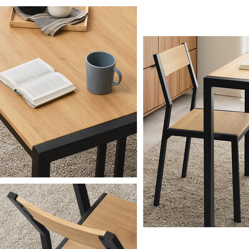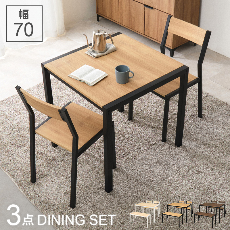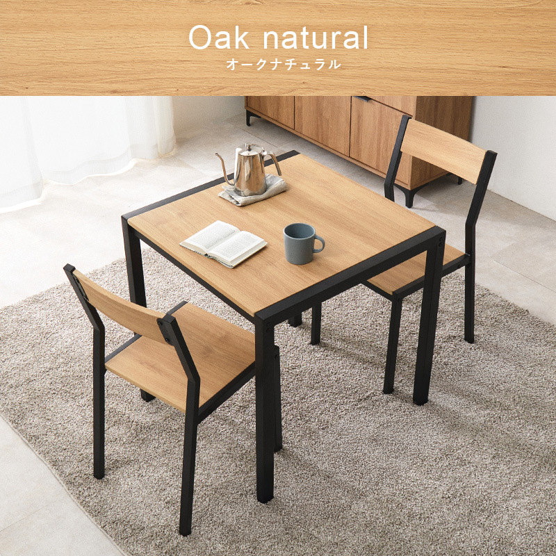 温かみのある木目調天板とアイアンフレームを組み合わせたダイニング3点セット。シンプルなデザインで、1〜2人暮らしにちょうどいいコンパクトなサイズ感。