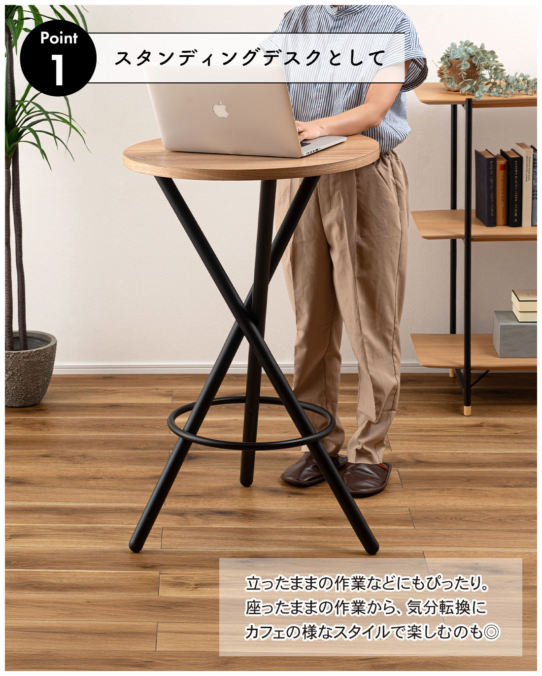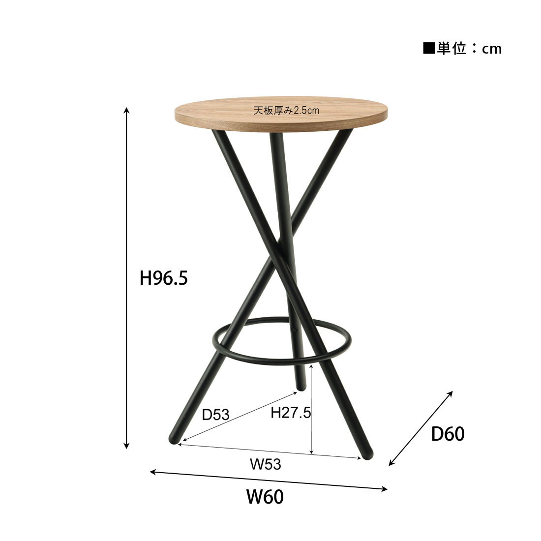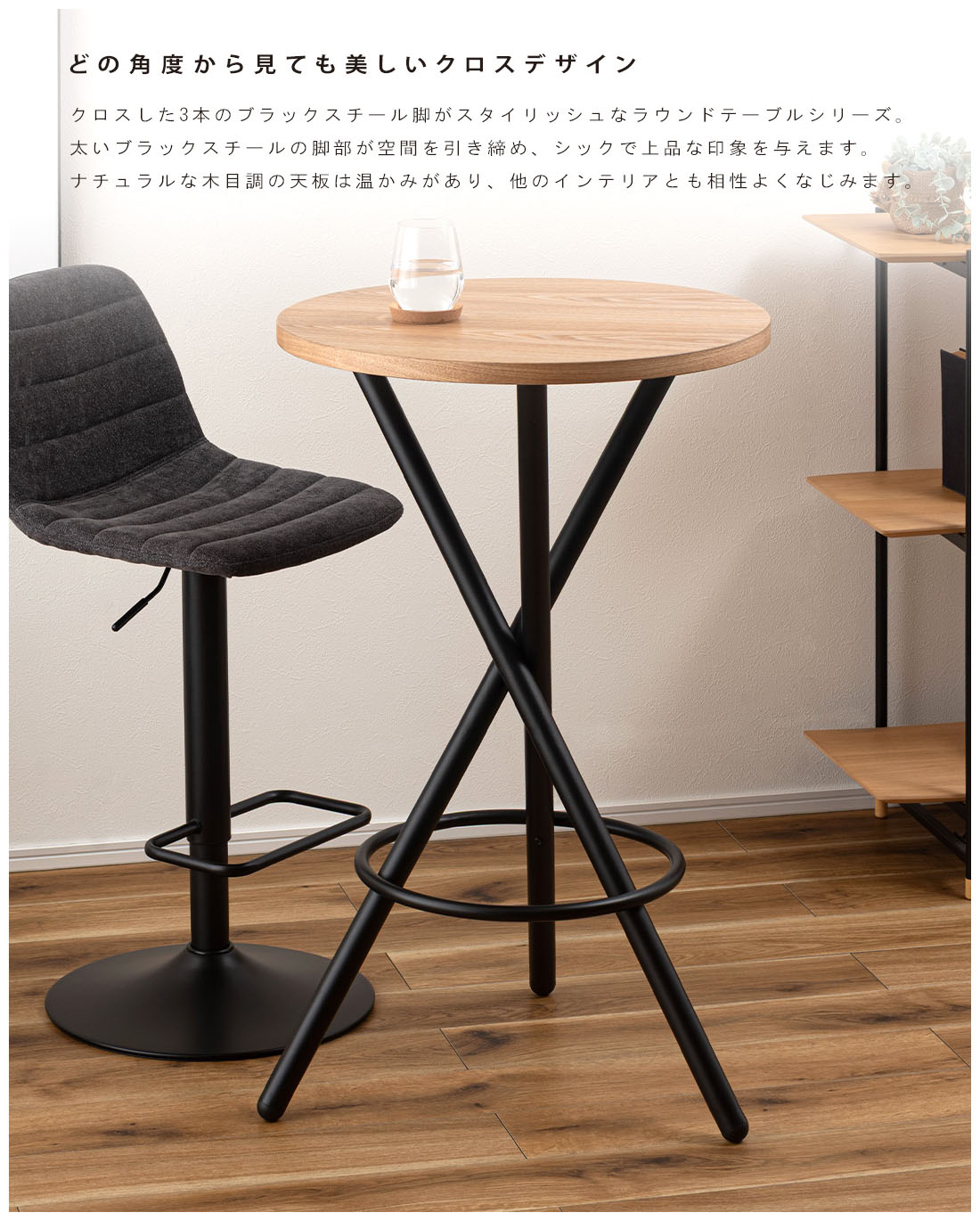 ラウンドテーブル 60cm ハイテーブル 丸型 円形 おしゃれ 天然木 スチール 北欧 カフェ ナチュラル