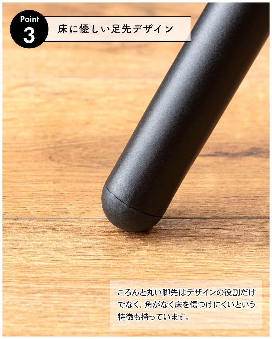 ●ころんと丸い足先はデザインの役割だけでなく、角がなく床を傷付けにくいという特徴も持っています。