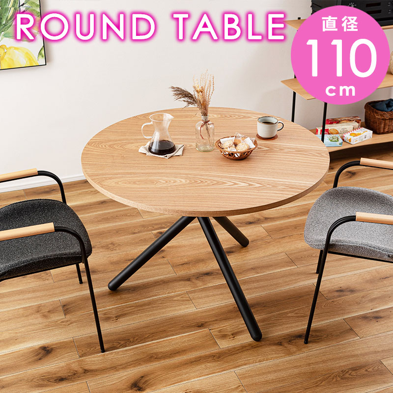 ラウンドテーブル 110cm ダイニングテーブル 丸型 円形 おしゃれ 天然木 スチール 北欧 カフェ ナチュラル