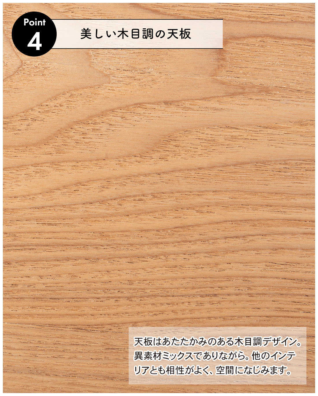 ●天板は木目が美しくあたたかみのあるアッシュ材を使用(突板仕様)。