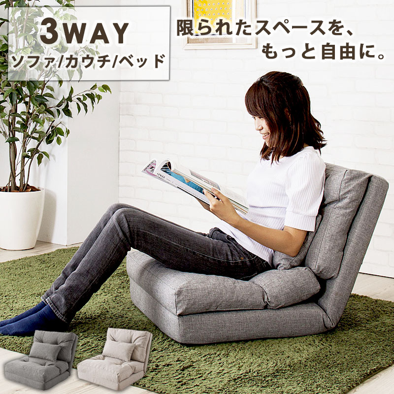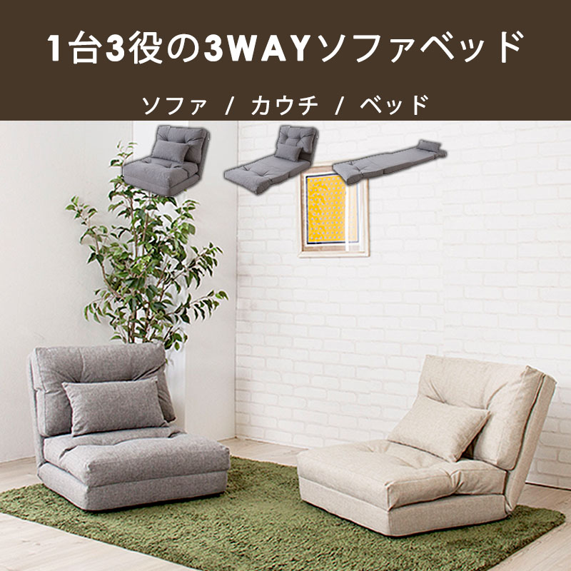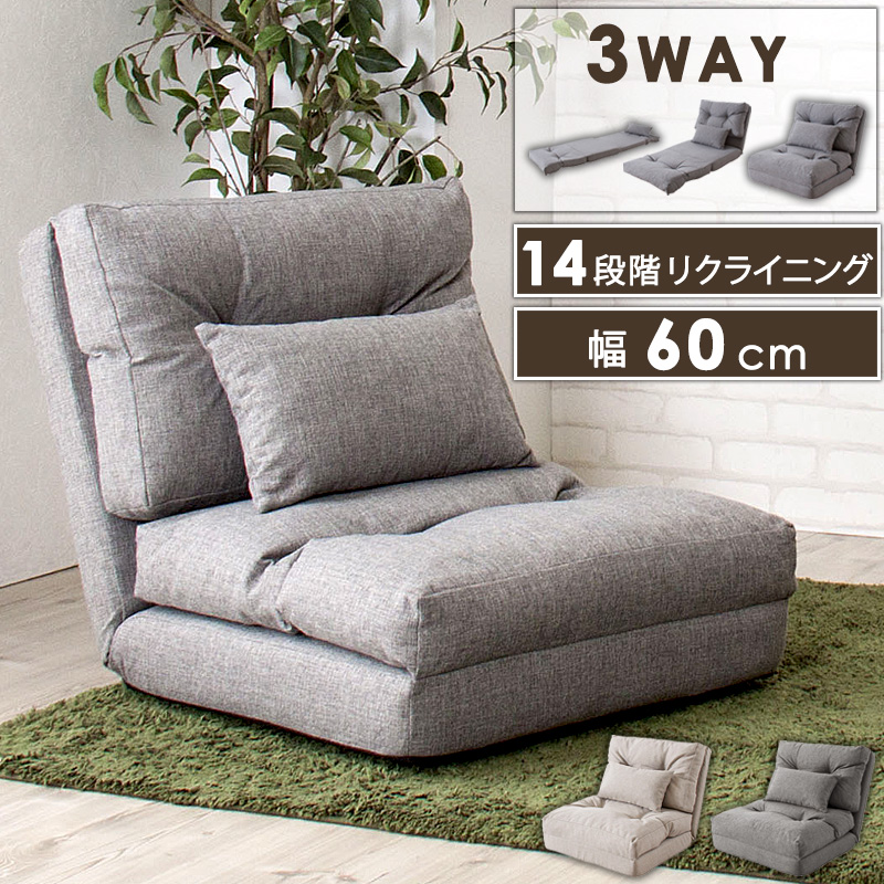 ソファ ベッド 幅60 座椅子 1人掛け 14段階リクライニング 3WAY クッション 可愛い おしゃれ 北欧 ハイバック 一人掛け コンパクト ソファーベッド ギフト