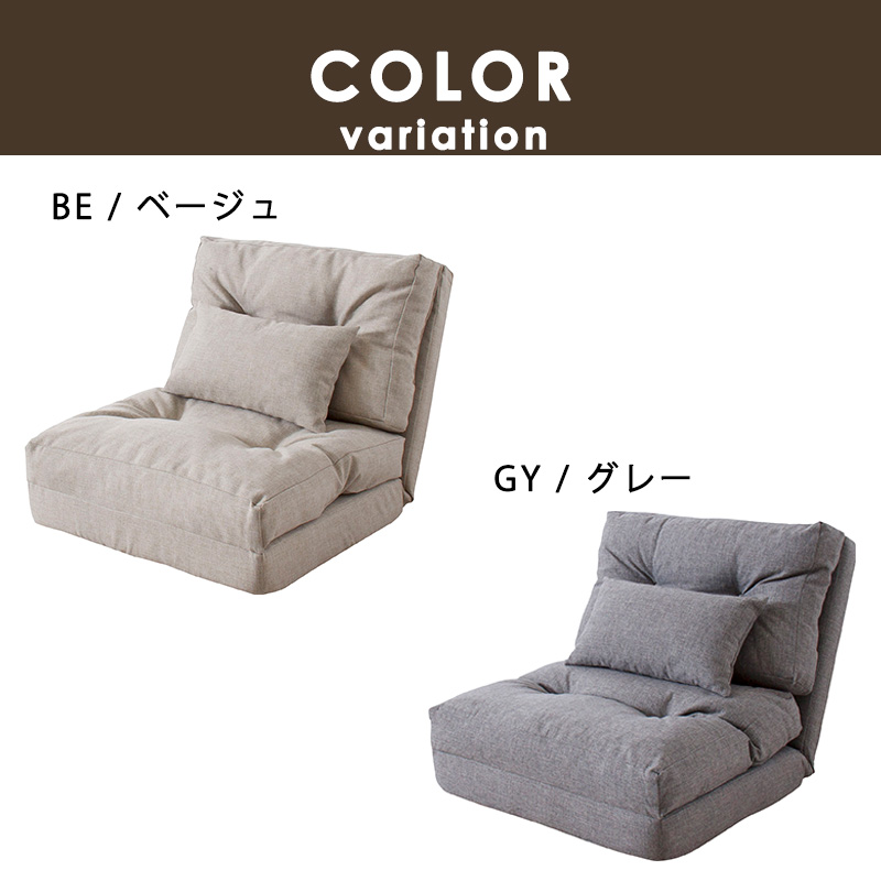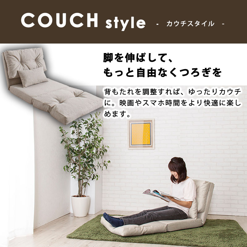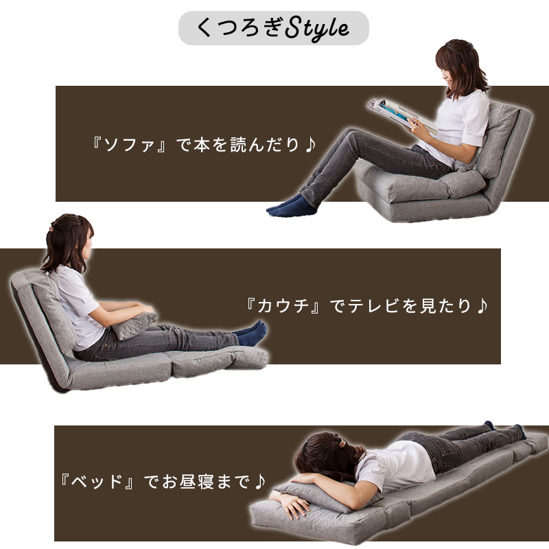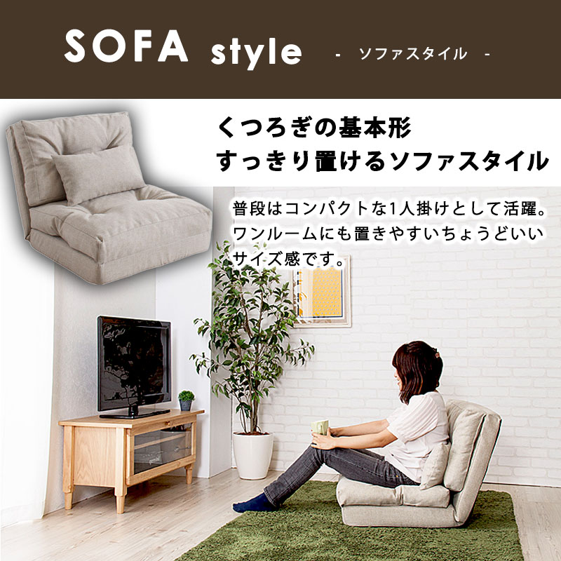 ●タイプ1はフロアソファとしての定番使用、14段階のリクライニング機能付きで、安定感のある使い心地。