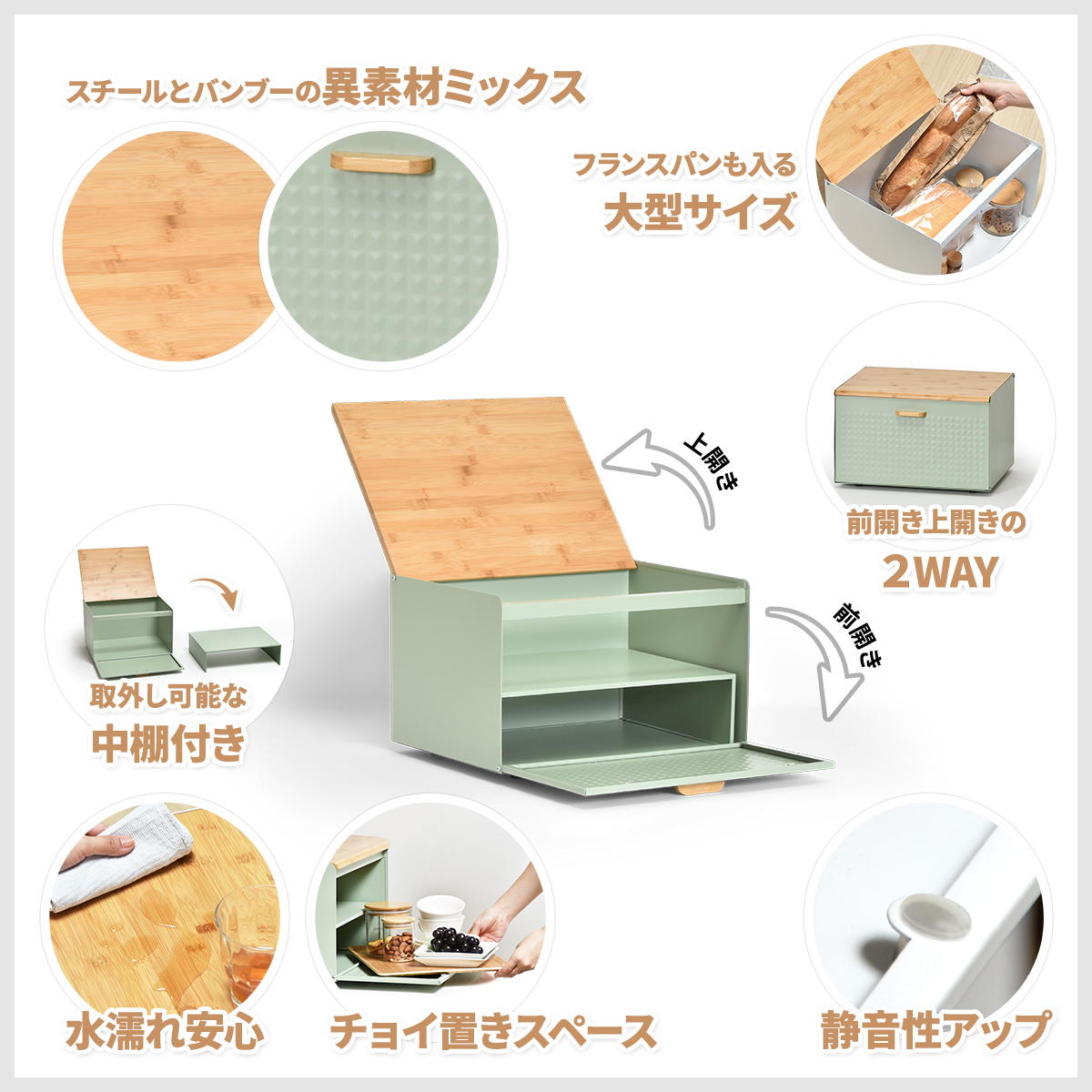 キッチン収納 収納 上開き 前開き 両開き ブレッドケース キャニスター ブラック ホワイト ピスタチオグリーン マグネット 木製 北欧 上開き ギフト爆買