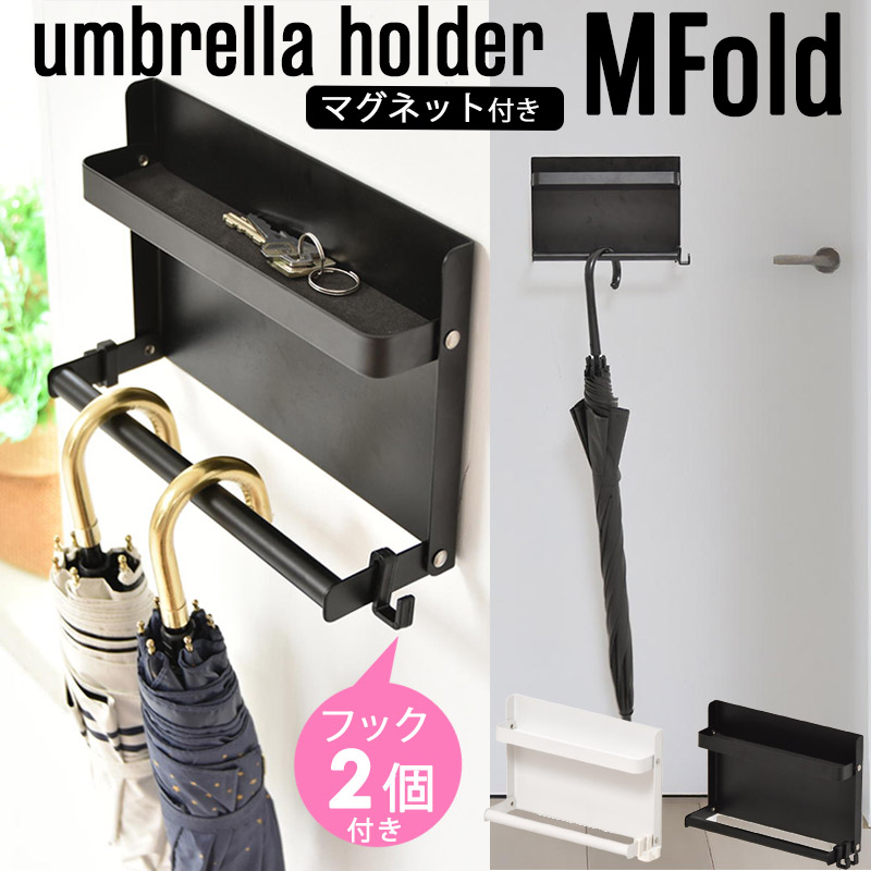 アンブレラハンガー ホルダー 傘立て マグネット スリム おしゃれ 折り畳み 壁付け 傘掛け フック小物置き 玄関収納 コンパクト 省スペース スチール 白 ギフト