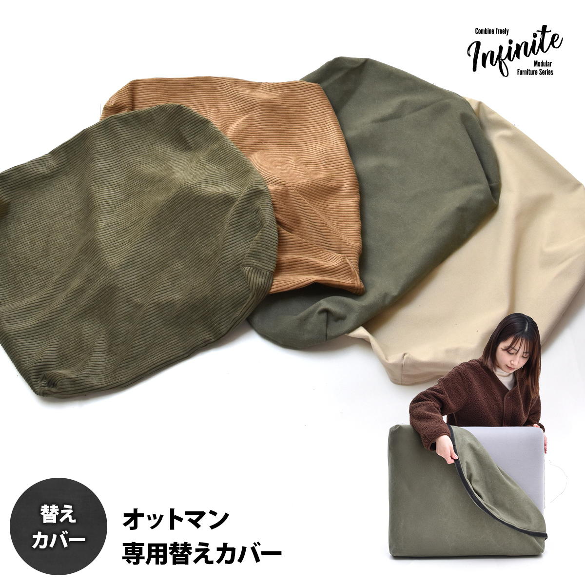 オットマンクッションカバー 交換用カバー リビング 替えカバー 専用カバー 洗濯可能 コーデュロイ グリーンブラウン キャンバス地 キャンバス ギフト