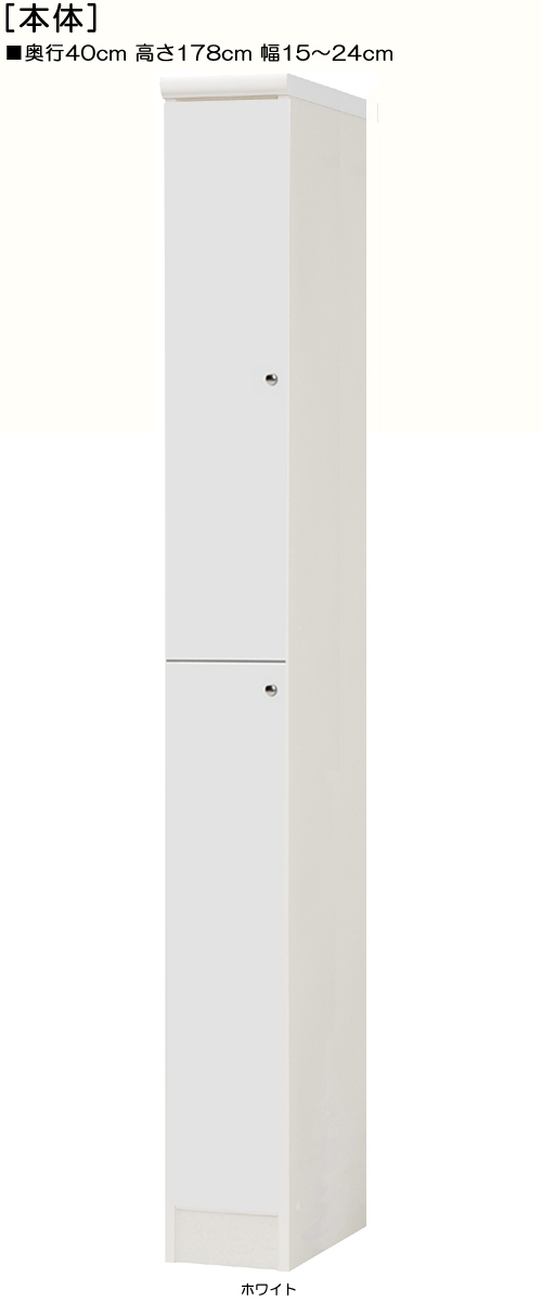| 全面扉全面扉付きスリム収納 (棚板厚さ1.7m) 奥行40cm×高さ178cm×幅15〜24cm 幅は1cm単位で指定 |