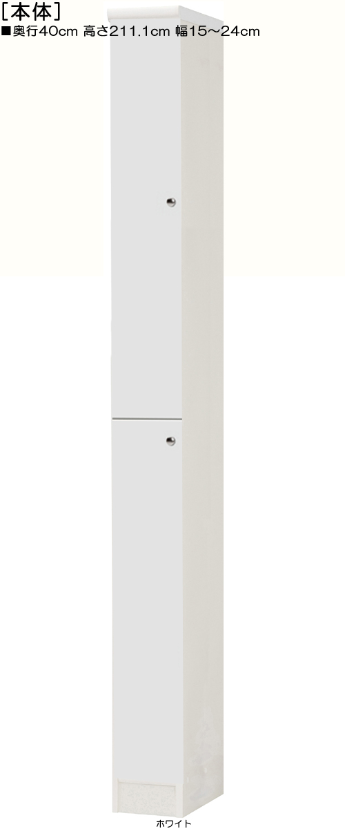 | 全面扉全面扉付きスリム収納 (棚板厚さ1.7m) 奥行40cm×高さ211.1cm×幅15〜24cm 幅は1cm単位で指定 |