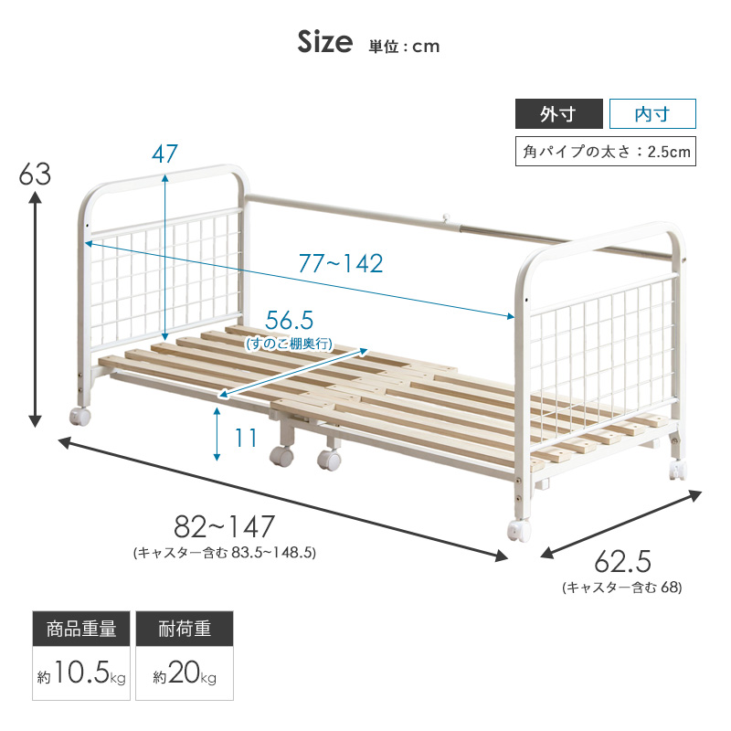 サイズ 本体:幅82-147(キャスター含む83.5-148.5)×奥行62.5(キャスター含む68)×高さ63cm