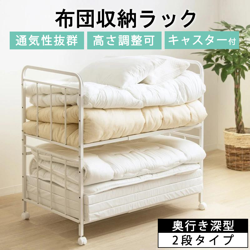 布団 収納 ラック 2段 キャスター付き 安い ケース 押入れがない 棚 押入れ 収納庫 アイデア コンパクト ケース 棚 高さ調整 可能 クローゼット ギフト爆買