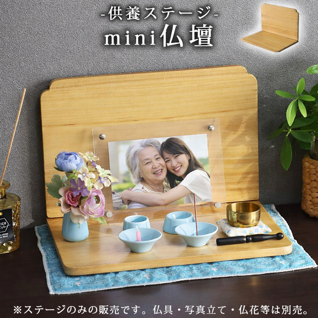 置く場所を選ばないミニタイプのミニ仏壇(供養ステージ)。