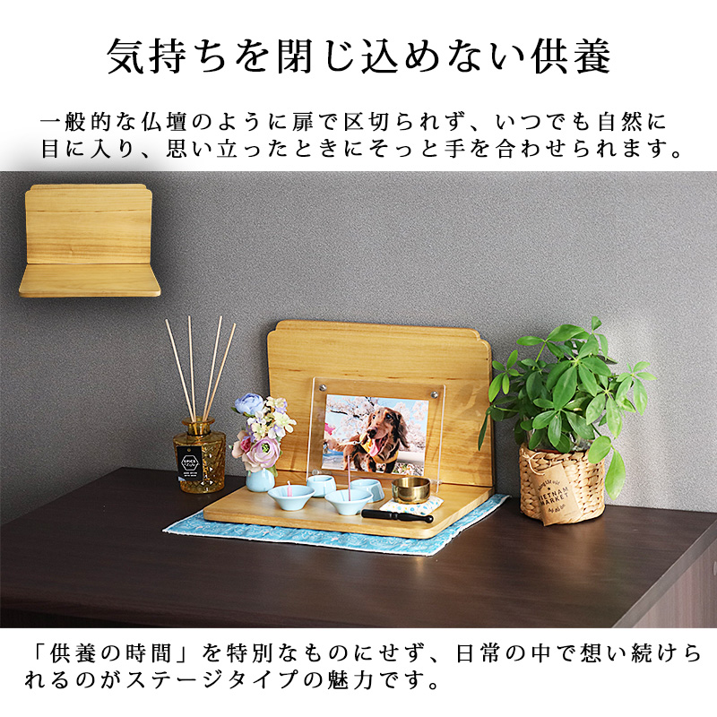 ミニ仏壇 ステージ型 天然木 桐材 手元供養 ペット供養 コンパクト モダン 台 小型 ナチュラル おしゃれ 小さい 小さな シンプル かわいい 収納 犬 ねこ 用