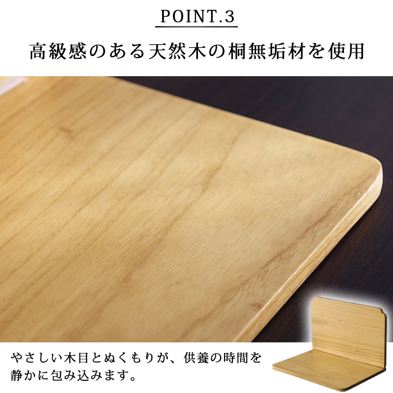天然木桐材を使用。マンションや大きな仏壇を置くスペースがない方にお勧め。