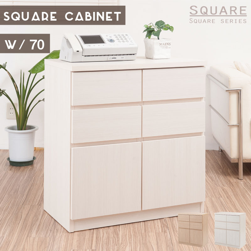 スクエアキャビネット幅70 ハイ 引出しタイプ ホワイト ナチュラル 収納 日本製 完成品 リビングボード サイドボード キッチンボード ギフト爆買