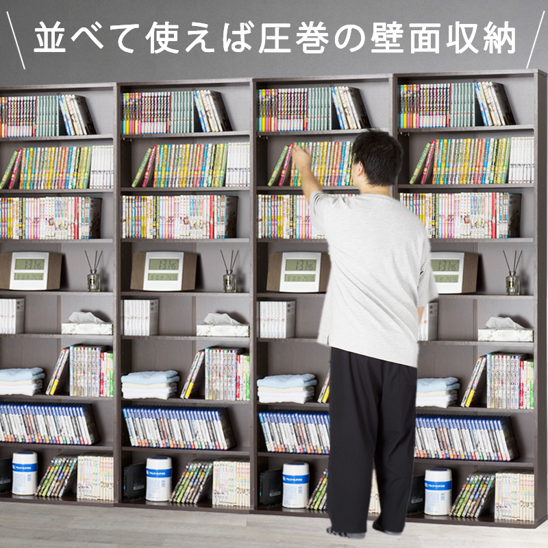 スリムで浅めでコミックや文庫本に特化、高さ180cm最大8段、これ1台で約300冊収納可能で大容量。