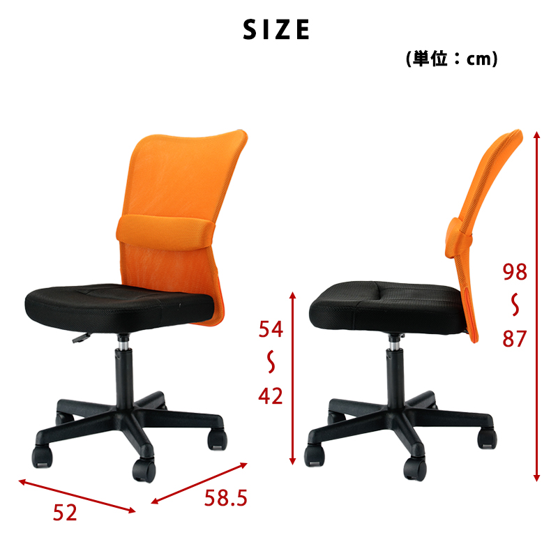 (約)幅52×奥行58.5×高さ87〜98cm(座面高:42〜54cm)