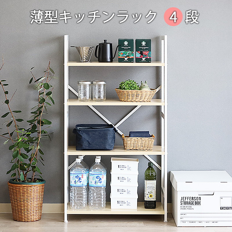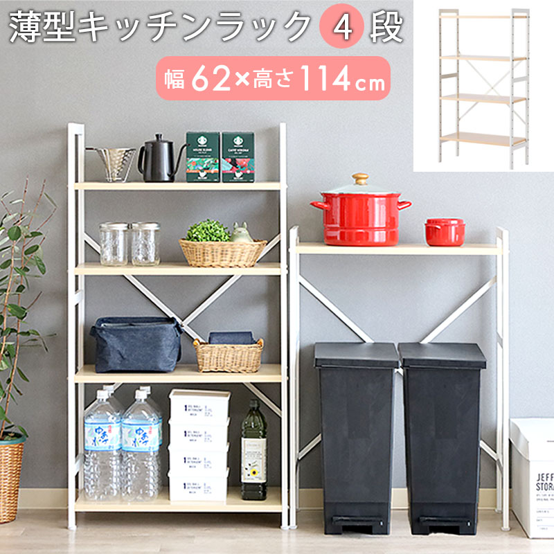 キッチンラック ゴミ箱上 収納 スリム 幅60 白 奥行30 高さ114 cm 4段 薄型 木製 棚 オープン スチール キッチン ラック シェルフ 北欧 ポイント利用