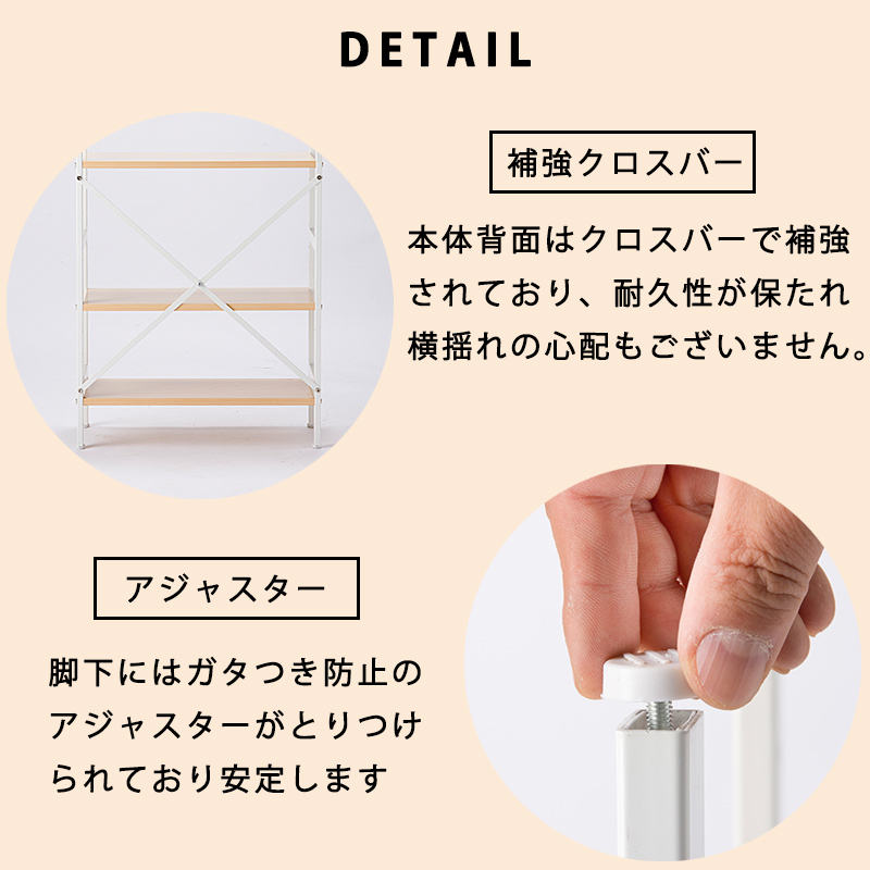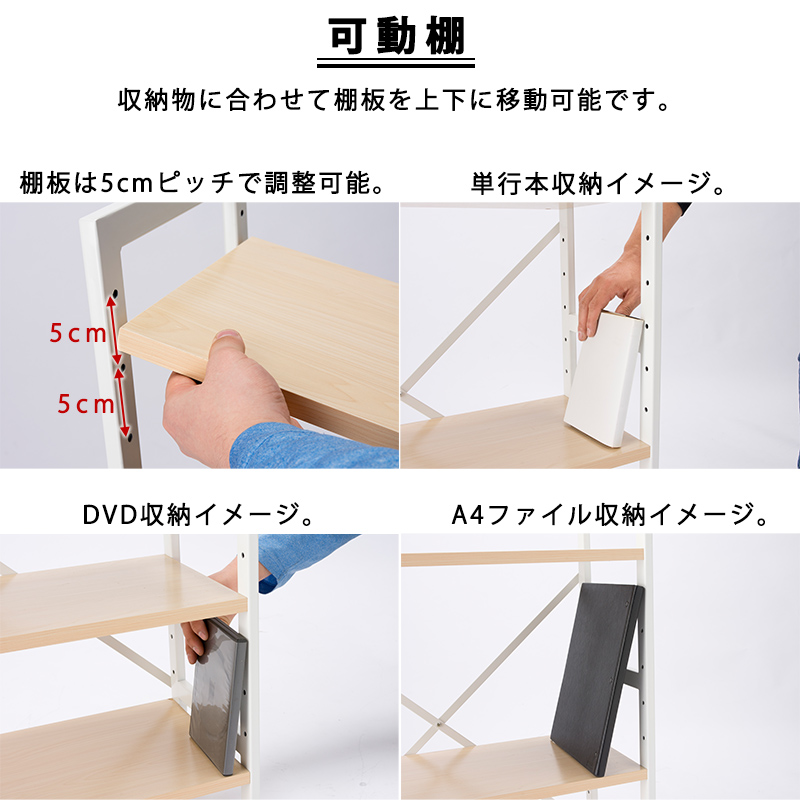 5cmピッチで棚板高さが調節できるシンプルなデザインのスチールラック。ゴミ箱上ラックやデスクのサイドラックとしても。