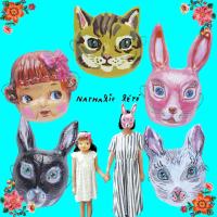 ナタリー・レテの描くキッチュ&シュールなキャラクターたちがとびきりキッチュなプラスチック・アニマルマスクになりました!