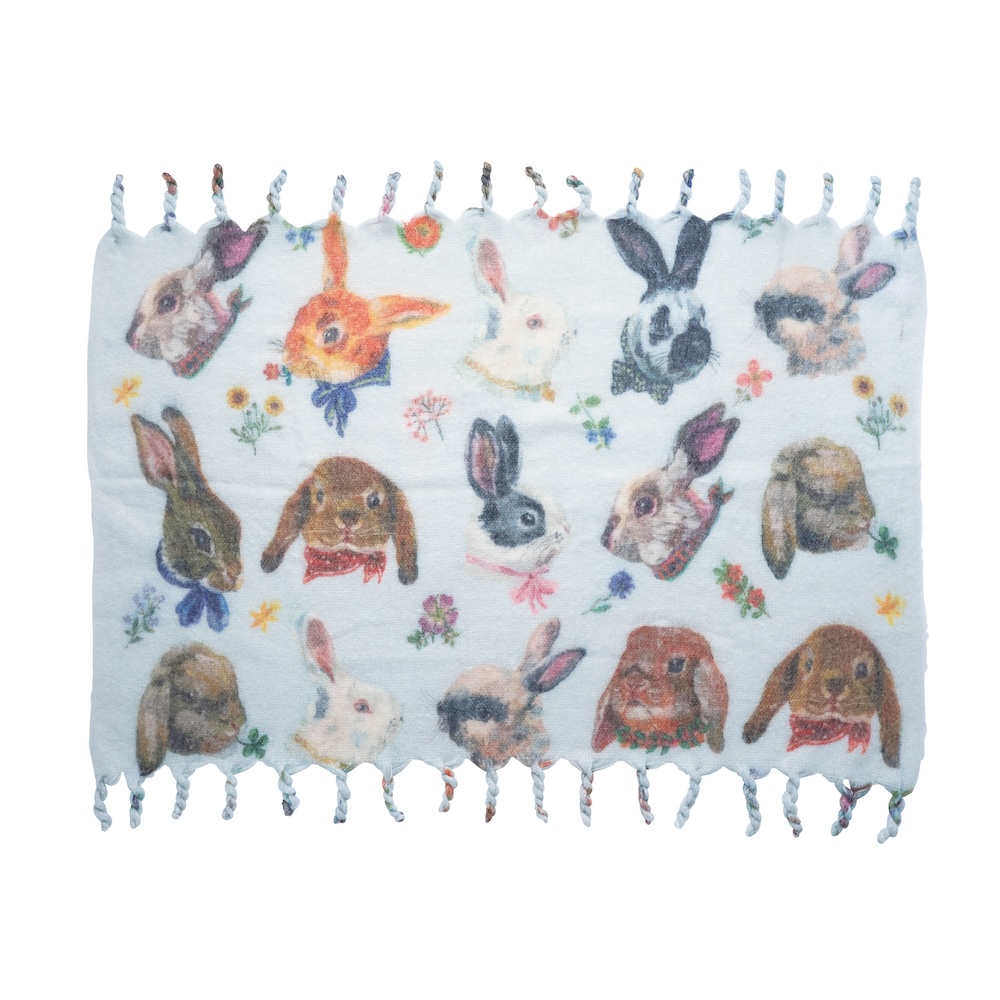 ナタリー・レテ シャギー・ブランケット・ストール ラビッツ ホワイト・グレイ うさぎたちのふわもこ毛布 ペイル・グレー