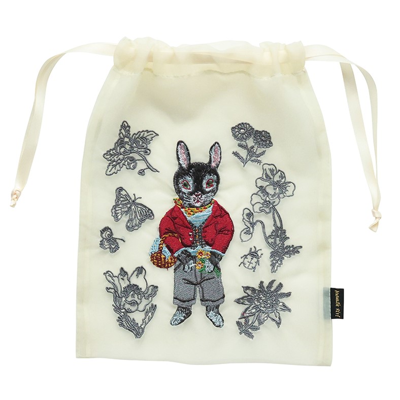 こちらは、ナタリーの代表的キャラクター、ブラック・バニー・ラビット、レグリースをフィーチャーした、大人かわいいシースルー巾着。