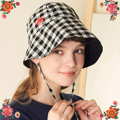 ナタリー・レテ ハット レッド・ベアー&トマト ブラック・ギンガムチェック 多機能帽子