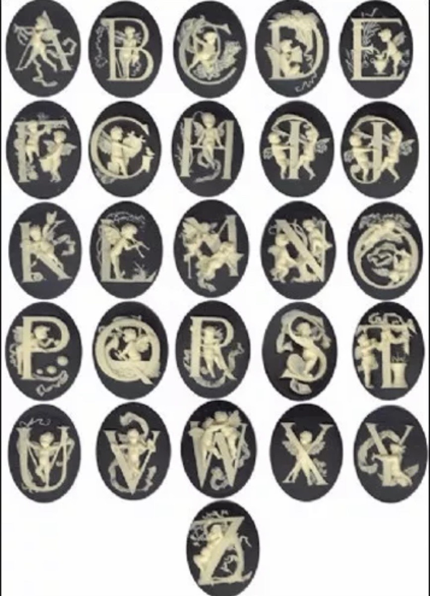 超大作!新作のシリコンモールド☆26種のイニシャルカメオ型アルファベット天使エンジェルクラシカルアンティークヴィンテージsilicone mold cameo