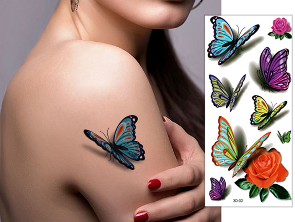 タトゥーシール 3D 立体感 蝶 薔薇 3d02 レギュラー