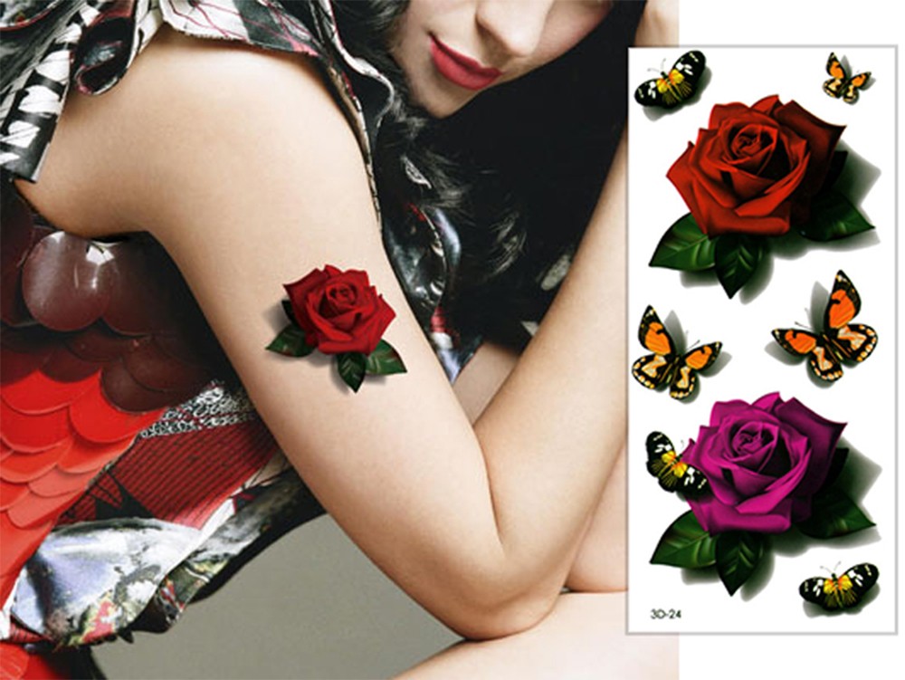 タトゥーシール 3D 立体感 蝶 薔薇 3d24 レギュラー