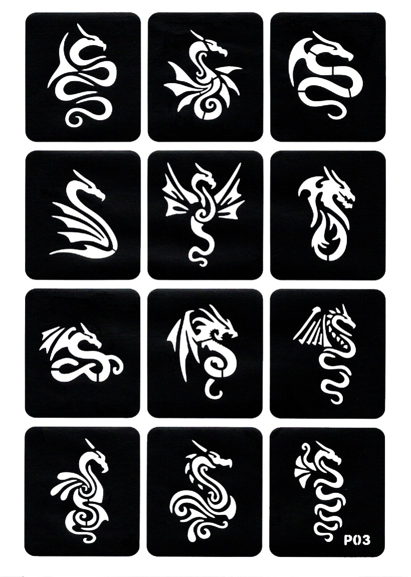 ステンシルシート シール ヘナタトゥー グリッタータトゥー用 複数デザインa4p03 ノーパッケージ