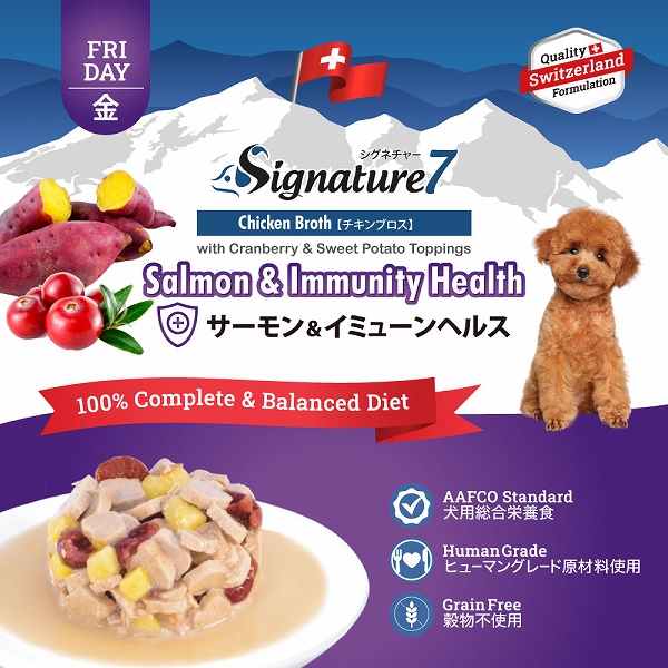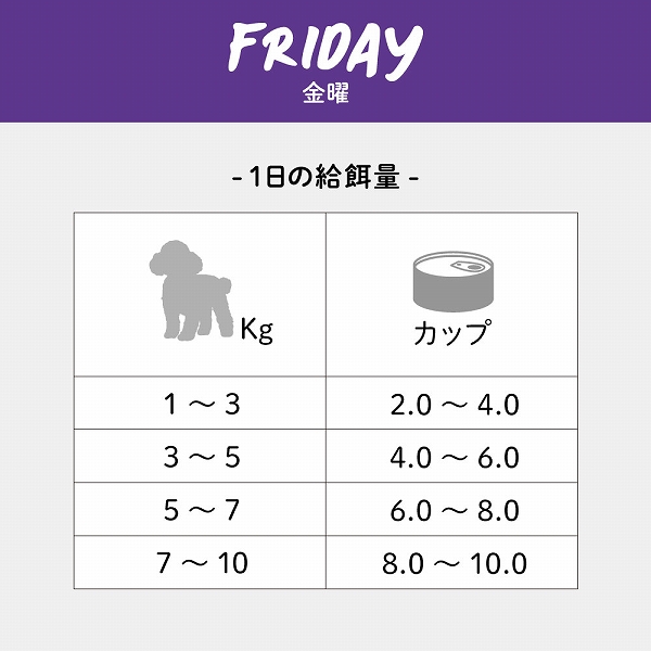※パッケージに記載されている曜日とフレーバーは定められたものではありません。ライフスタイルや愛犬の体調、好みに合わせてお選びください。