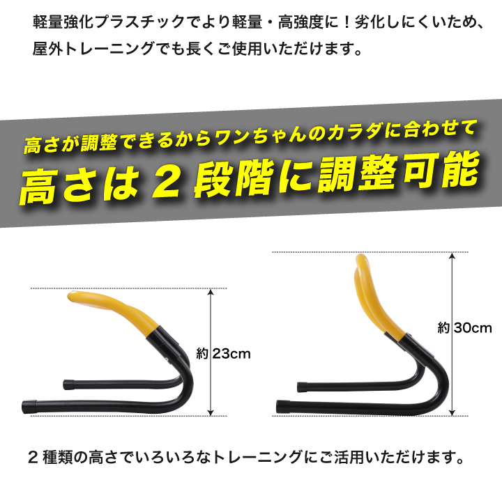 | 俊敏性・瞬発力・跳躍力を総合的に鍛えられる、ドッグアジリティ用「高さ2段階式ミニハードル」です。 軽量かつ耐久性に優れた強化プラスチック製で、屋内外どちらでも使用可能。 愛犬の体格やレベルに合わせて高さを簡単に2段階調整できるため、初心者から上級者まで幅広く対応します。 工具不要で組み立て・分解がスムーズ、持ち運びや収納にも便利。 日々の運動不足解消や競技会に向けた本格トレーニング、また遊びながらのしつけにも最適です。 踏んでも壊れにくく、安全面にも配慮。 愛犬と一緒に楽しくチャレンジしながら、健康維持とスキルアップをサポートします。 |