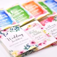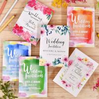 | お届けの内容 | (1)招待状本状 (2)返信はがき(宛名印刷込) (3)封筒(差出人印刷込)※封筒に宛名印刷および切手は含まれません (4)封シール (5)付箋(基本セット:受付/4枚 乾杯/1枚 祝辞/4枚 余興/10枚) | ||||||