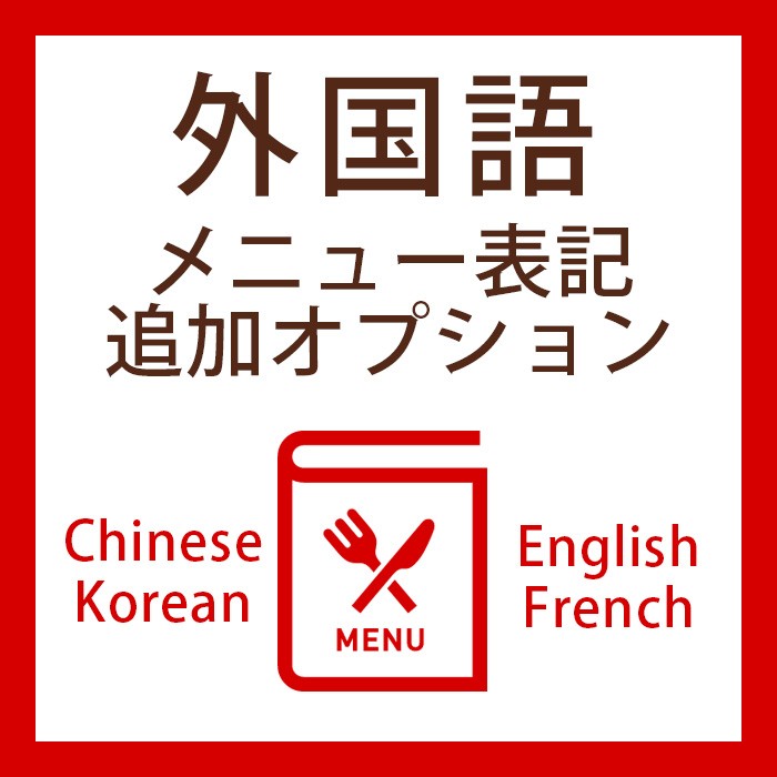席次表のメニューを外国語表記(英語、フランス語、中国語、韓国語)でお作りしたり、追加することができます。フォント対応もバッチリ!文字化けの心配もありません。