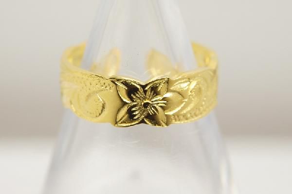 プルメリア(花)&スクロール(波)彫り ピンキー&トゥリング イエローゴールドカラー