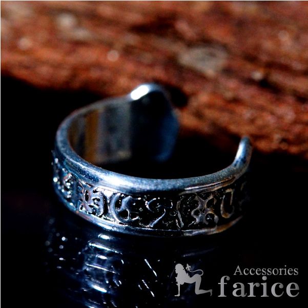 梵字(インド文字)レリーフデザイン ブラックカラー燻し風仕上げ メンズ フリーサイズ トゥーリング ピンキーリング