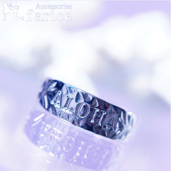 ALOHA文字入り プルメリア(花)&スクロール(波) カットアウトデザイン ハワイアンジュエリートゥーリング「5mm幅/シルバーカラー」