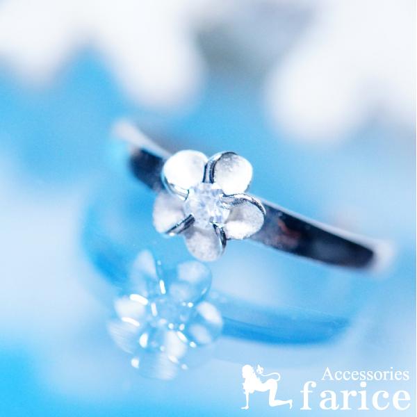 ★商品のサイズ★ リング幅 本体約1.8mm 花約6mm 外径約16mm 厚み約1mm 重さ約0.9g ★素材★ シルバー925+ホワイトキュービックジルコニア