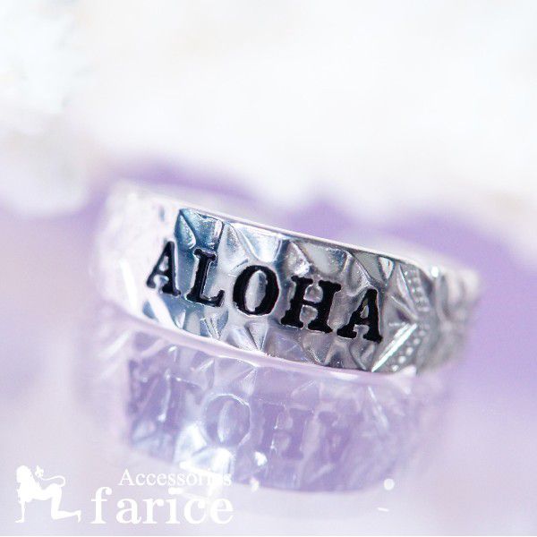 ALOHA(アロハ)文字 ブラックエナメル プルメリア&スクロール カットライントロピカル ハワイアンジュエリー ピンキー&トゥーリング「4mm幅」