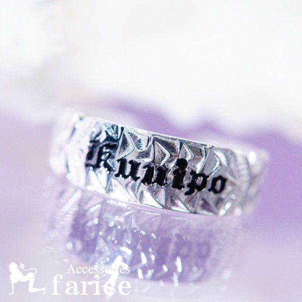 kuuipo(恋人)文字 ブラックエナメル プルメリア&スクロール カットライントロピカル ハワイアンジュエリー ピンキー&トゥーリング「4mm幅」
