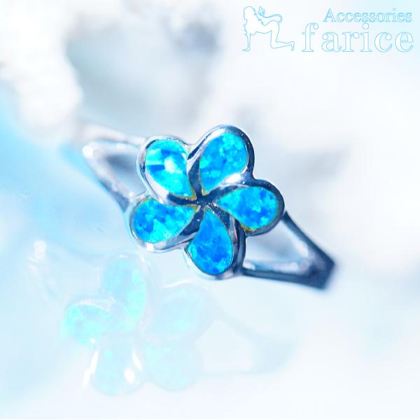 一輪プルメリア(花)オパール装飾 透かしフレームデザイン ハワイアンジュエリートゥーリング