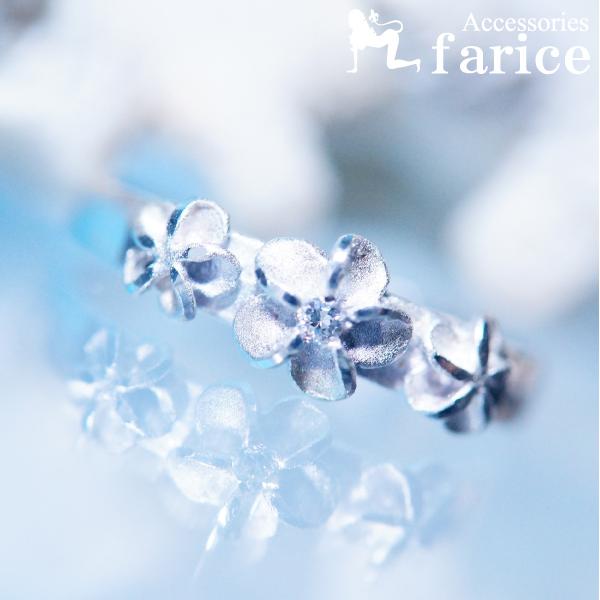 ★商品のサイズ★ リング幅 本体約2.5mm 花約6mm 外径約16mm 厚み約1mm 重さ約1.0g ★素材★ シルバー925+ホワイトキュービックジルコニア