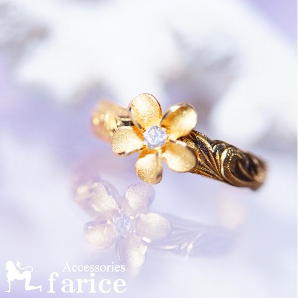 ★商品のサイズ★ リング幅 本体約4mm 花約7mm 外径約16mm 厚み約1mm 重さ約0.9g ★素材★ シルバー925+イエローゴールドコーティング+ホワイトキュービックジルコニア