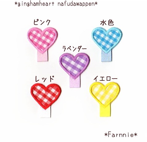 名札用アイロンワッペン【ギンガムチェック柄ハート】