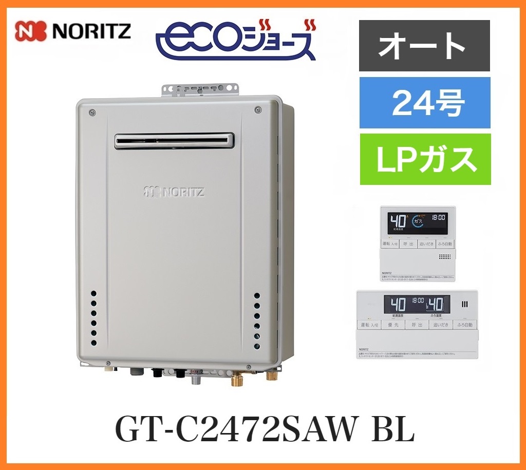 [マルチリモコン付] ノーリツ プロパンガス LPG LPガス 給湯器 エコジョーズ 24号 オート 追い焚き 屋外壁掛 GT-C2472SAW 新品 [K3121]